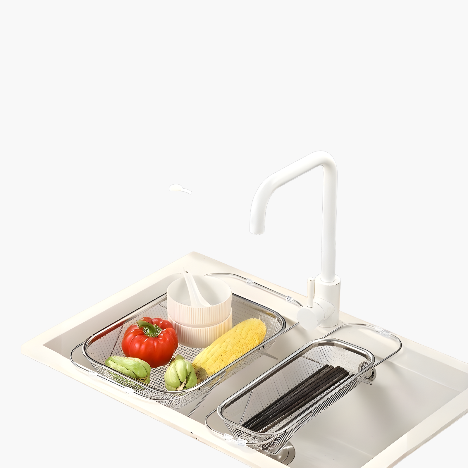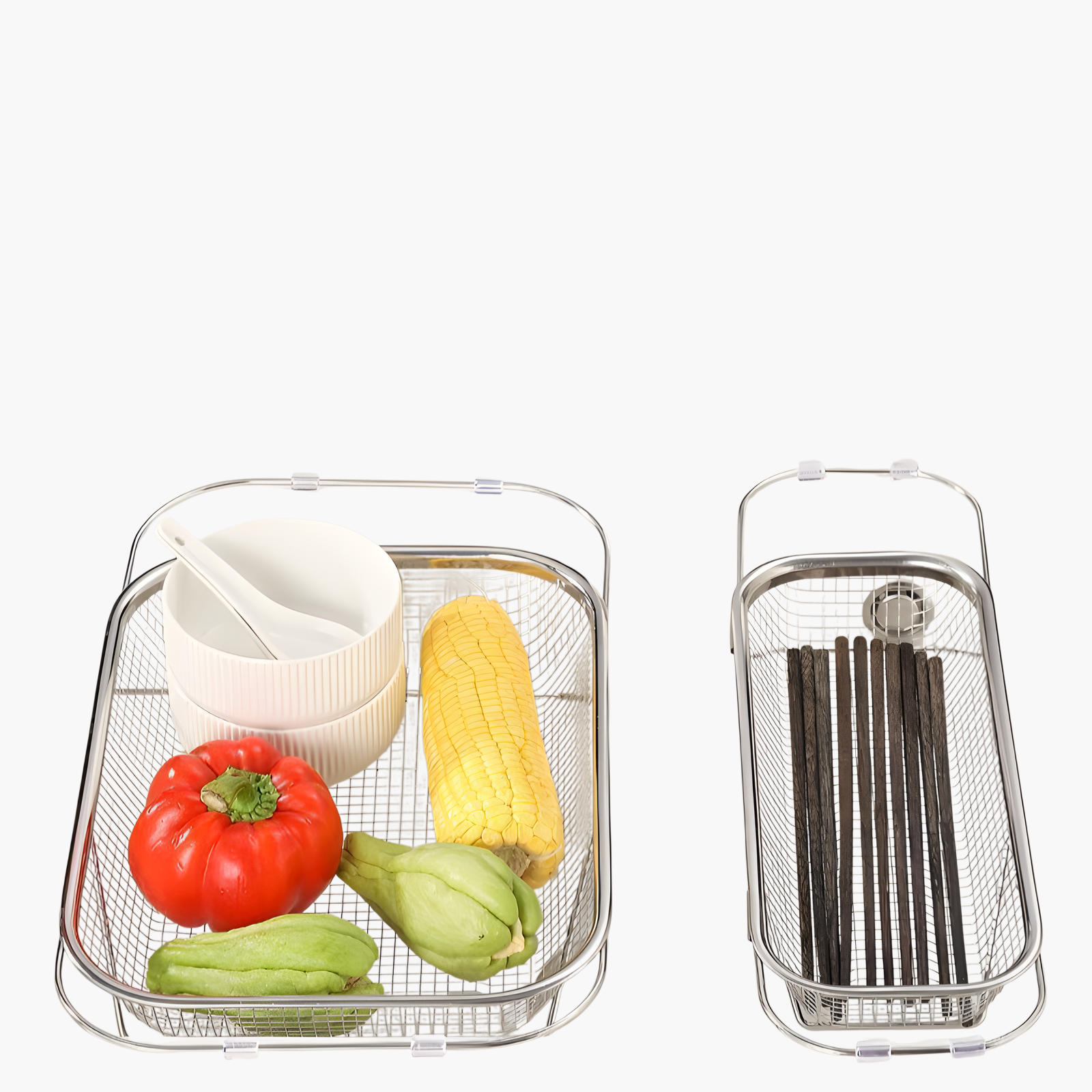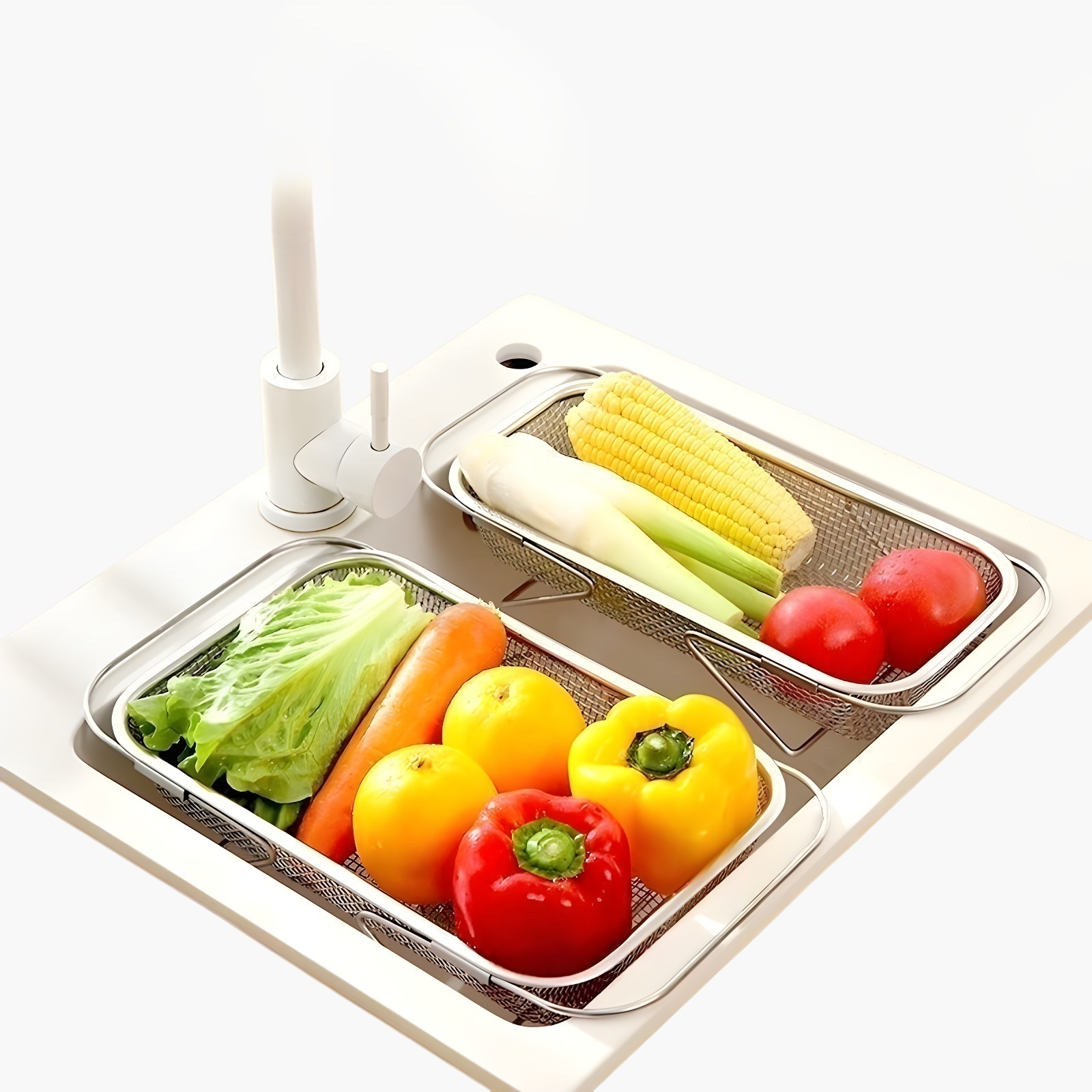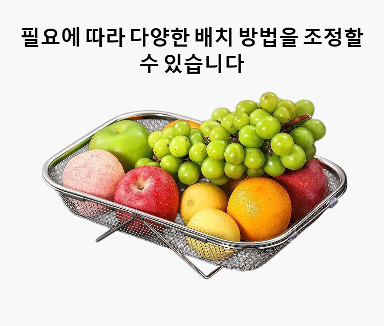 스테인리스 스틸 배수 바구니 보관 선반은 내구성이 뛰어나며 녹슬지 않습니다. 통풍이 잘되어 위생적인 주방 정리가 가능합니다. 설치와 세척이 간편합니다.