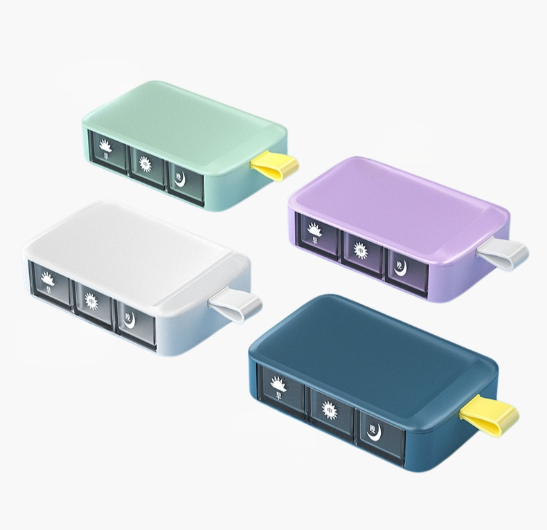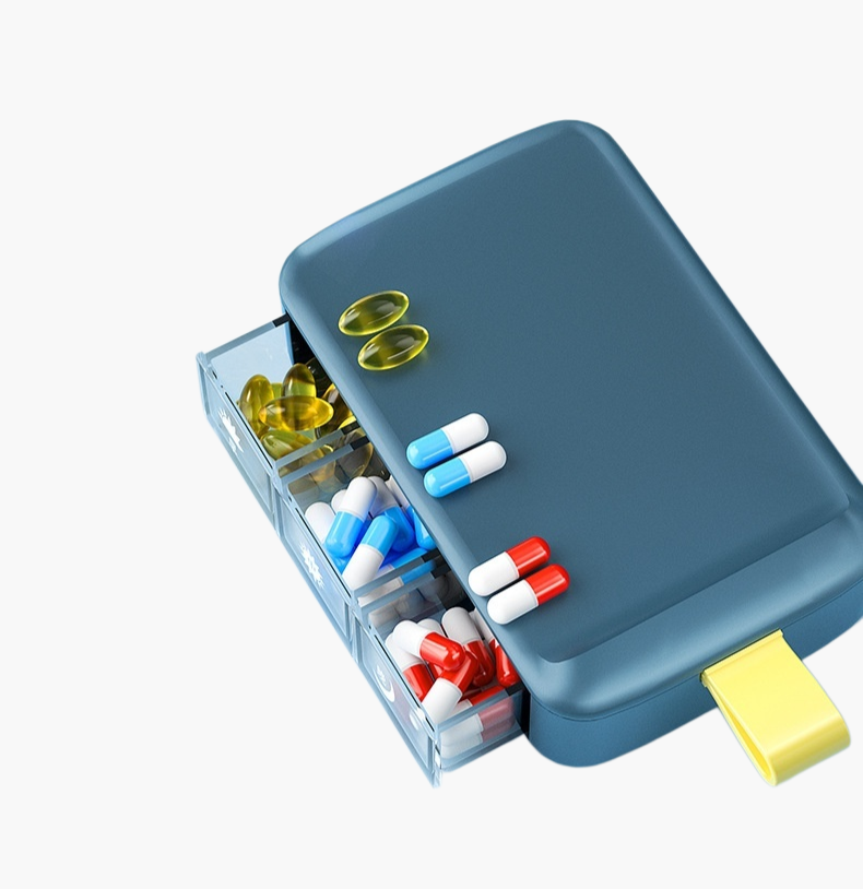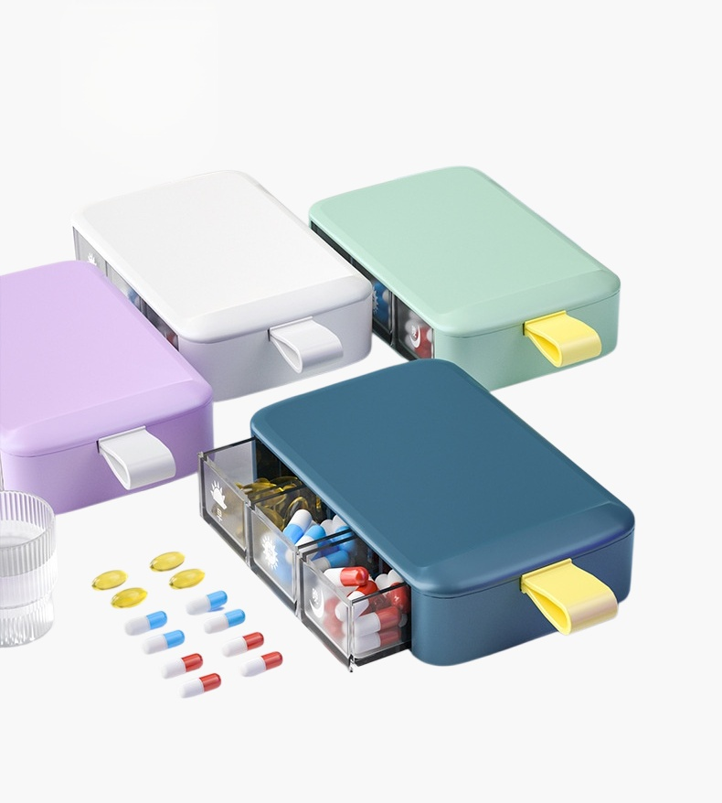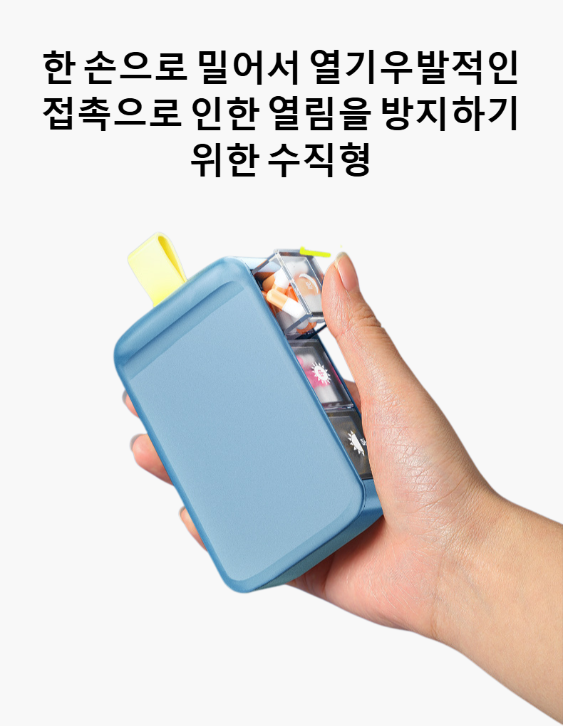 휴대용 약품 보관함, 간편한 휴대, 방수 및 내구성, 다중 분할 구조로 약품 정리 용이, 여행 및 일상 필수품